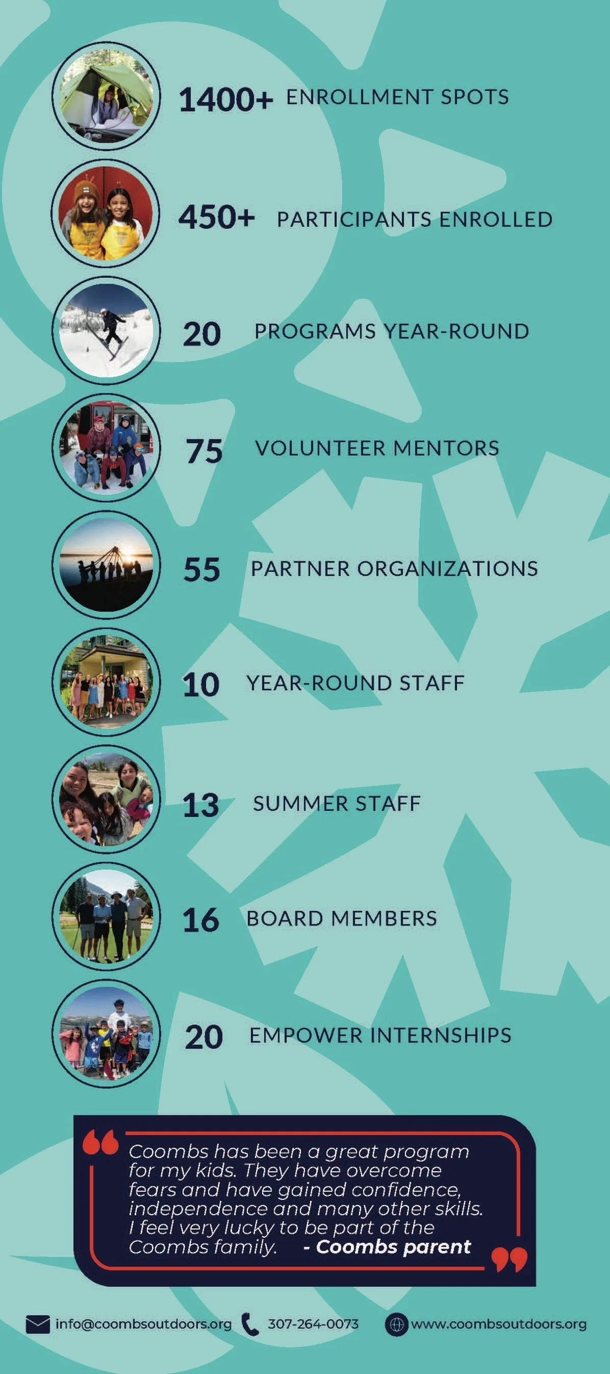 We’re proud to provide access, belonging, and fun for local kids, and their families need support now more than ever. Summer can be challenging for working parents, especially here in Jackson with the high demand and cost for childcare and limited availability of local summer programs. Thanks to the incredible generosity of donors like you, kids enrolled in Coombs summer programs get to be active, social, and away from screens all summer long.